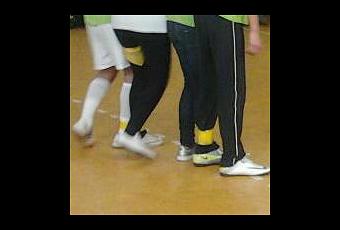 La competición consiste en que los de bachillerato vayan en parejas y lleven los pies atados....y os aseguro que los niños de infantil lo dan todo...y es imposible que los mayores puedan ganar el partido.