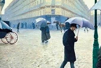Gustave Caillebotte: Calle de París en un día de lluvia (detalle), 1877.