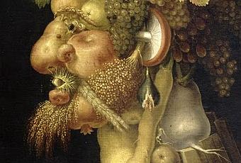 Giuseppe Arcimboldo (1527/1530-1593)El otoño, 1573Óleo sobre tela, 67 x 63 cmMuseo del Louvre, ParísSe trata de una pintura que forma parte de la serie dedicada a las estaciones del año, encargada al artista por el emperador Maximiliano II de Habsburgo, en el año 1573, con objeto de regalársela al lector Auguste de Saxe.