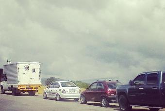 Preguntamos y retomamos la vía. Al llegar a cierto punto, un piquete de la Guardia Nacional tenía trancada la carretera. Un efectivo con más fusil que edad nos informó que no había paso porque en Orope estaban protestando.