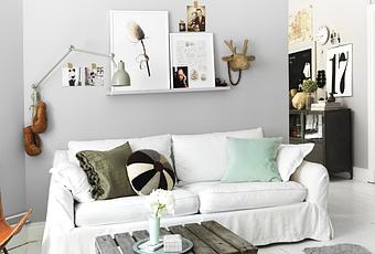 Este coqueto salón pertenece a la Diseñadora de Interiores Linda Åhman. Entre gris y blanco revistiendo la sala, se encuentran varias piezas antiguas que lo dotan de carácter. Me gusta todo el conjunto, aunque personalmente quiesiera destacar el flexo colgado en la pared y las sillas reaprovechadas de una antigua escuela.