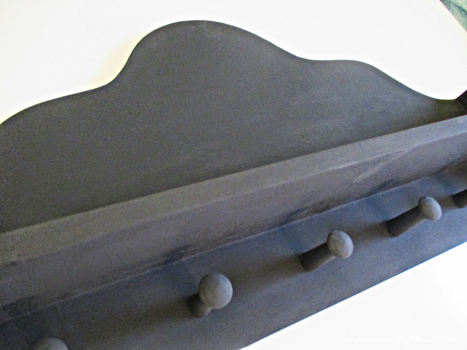 Lo pinté con dos capas de gesso negro y lijé los bordes dejando que apareciera el rosita de debajo.