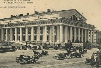 Antes de pasar a narrar los hechos, veamos una postal antigua de la Bolsa de entonces de San Petersburgo, en la actualidad convertida en Museo Naval, sito en la Isla Vasilievsky, la mayor isla del delta del río Neva.