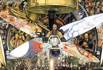"Perdóneme la risa. Es una buena risa, una carcajada irreprimible de reconocimiento y acaso nostalgia. ¿De qué? Creo que de la inocencia perdida, de la fe en la industria; el progreso, la felicidad y la historia dándose la mano gracias al desarrollo industrial. A todas esas glorias había cantado Rivera, como se debe, en Detroit. Como los anónimos arquitectos, pintores y escultores de la Edad Media construyeron y decoraron las grandes catedrales para alabar al Dios único, invariable e indudable, Rivera vino a Detroit como los peregrinos de antaño a Canterbury y a Compostela: lleno de fe. Reí también porque este mural era como una postal a colores del escenario móvil, en blanco y negro, de la película de Chaplin, Tiempos Modernos. Las mismas máquinas pulidas como espejos, los engranajes perfectos e implacables, las confiables máquinas que Rivera el marxista veía como signo igualmente fidedigno de progreso, pero que Chaplin vio como fauces devoradoras máquinas de deglución como estómagos de fierro que se tragan al trabajador y lo expulsan, al final como un pedazo de mierda.
