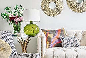 Algunas de las piezas que decoran el salón como el velador son de la tienda malagueña la albaida.