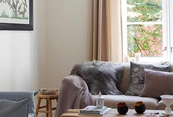 Colores neutros, el sofá es de ese tono tierra que consigue hacer mas cálida la estancia, por partida doble es de una tela que disimula las manchas, ademas de adaptarse perfectamente a tonos grises y tierras .. un chollo vamos.