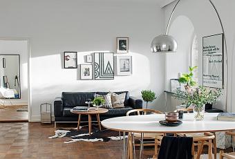 A pesar de ser un primero en un edificio de seis plantas la planta de esta vivienda es muy especial (me atrevería a decir que algo así sería más fácil verlo en un ático dúplex y no en un primer piso). Si seguís las fotos veréis los recovecos, diferentes alturas, paredes asimétricas, ángulos imposibles y otras curiosidades de la construcción de este piso sueco.