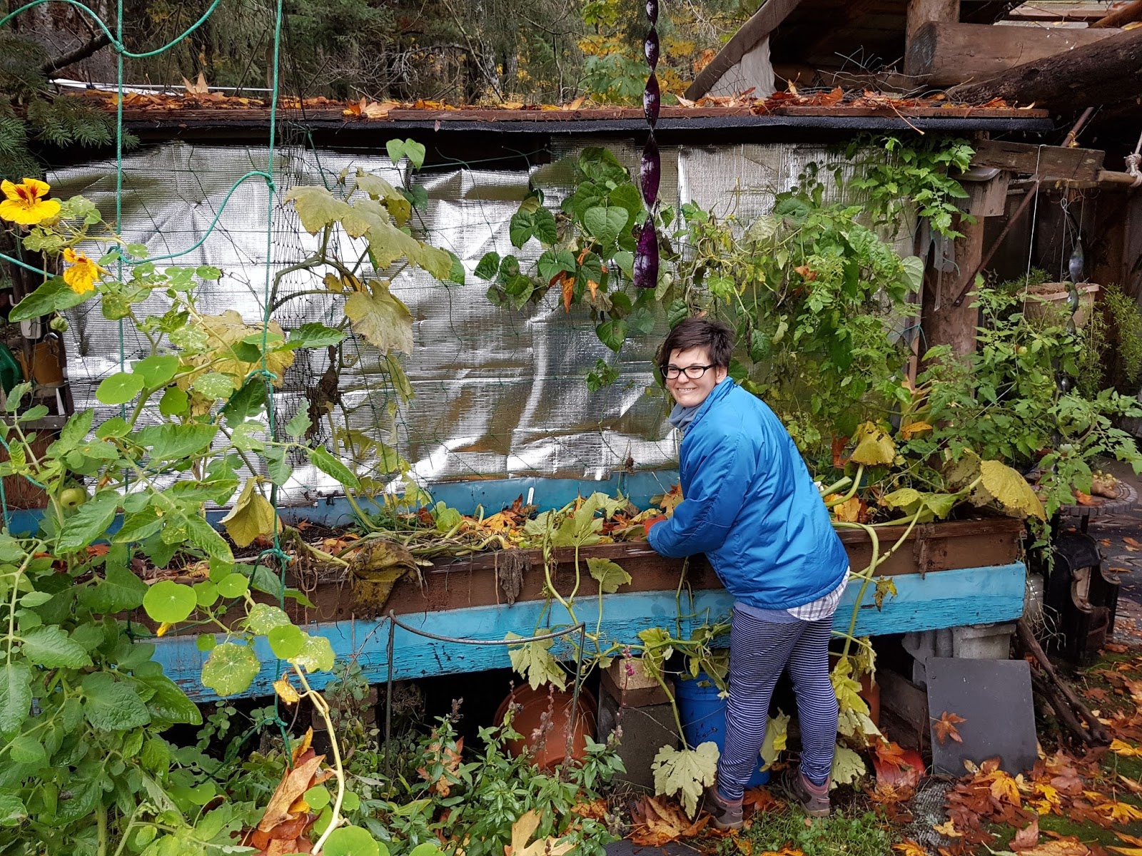Con Jim y Maria hemos preparado el invernadero para la próxima temporada, hemos puesto los tablones exteriores en una de las paredes de la casa, hemos guardado y ordenado la leña para el invierno, hemos ayudado a Jim a recoger y clasificar un montón de trastos… todo muy variado.