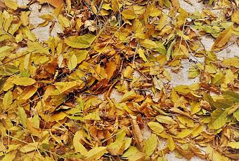 Hojas de Wisteria (Glicinia) después de caer las hojas de mi Wisteria , que cubre y sombrea parte de mi patio .