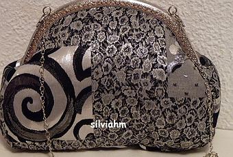 Pero entre todos ellos me encanta este bolso de boquilla, con una tela en plata preciosa.La tela es reversible, así que voy a hacer otro con el resto de tela, esta vez en dorados y azules.También hace ya unos días que me hice este revistero, con una de las preciosas plantillas de Lucía, de "Momentos vintage". quedó pecioso. Voy a estarcir este mismo motivo en unas galletas para las sillas, así que de momento he probado en tela de saco, y queda muy bien. He comprado también otra con una gallina, con la que hice una nueva bandeja. Ya estamos mirando para hacerle otro pedido. Bueno, por hoy nada más, me voy a tomar un cafetito y a "lola Botona Salamanca", donde empezamos hoy un nuevo curso de muñecas. Hoy toca hada de las flores y tildas. Hasta dentro de unos días.