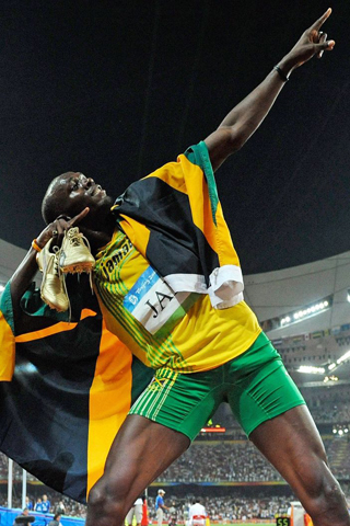 Probablemente, la máxima figura en esta disciplina sea, al menos en estos momentos, el jamaiquino Usain Bolt. Nacido en Trelawny, el 21 de agosto de 1986, es el hombre más rápido de la historia. Así lo demuestra su espeluznante registro de records: en mayo de 2008, batió la marca de Asafa Powell en 2 centésimas y marcó 9.72s. En los Olímpicos de Beijing marcó doble record que aún siguen vigentes: 9.69s en los 100m. y 19.30 en los 200m. Además, también se iba a imponer, y con plusmarca, en la posta 4x100, cuando Jamaica ganaba la medalla de oro.El 2009 fue otro año de tiempos supremos. Ocurría nuevamente la máxima cita atlética luego de los JJ.OO.: el mundial de Berlín. Todos los ojos puestos en el nuevo zar de la velocidad. Y no iba a defraudar. Al igual que en Beijing, tener atrás a Tyson Gay lo potenció: 9.58s en los 100 y 19.19s. en los 200. Casi dos años después, todavía no se han batido estos tiempos.