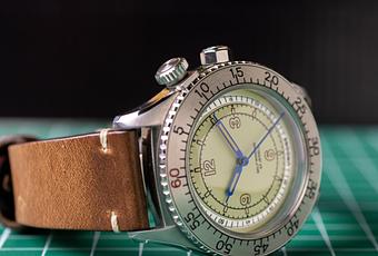 Origen: The Undone Aero Scientific is an homage to P.V.H. Weems rotating bezel.
