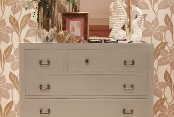 El verano pasado decidimos darle un aire totalmente distinto con cosas que había por casa, presupuesto gastado 100€ más las flores artificiales del jarrón que no sabemos cuanto costaron.La cómoda vino de la habitación de mis padres, para el dormitorio era enorme y aquí encaja perfecta. Era de color oscuro ya que es de teca (estilo esta de Banak) y nos apetecía algo más fresco que combinase con el papel el tonos topos y dorados por lo que decidimos lacarla en un tono azul grisáceo, en esto fue en lo que gastamos los 100 euros. La alfombra estaba guardada ya que la gata tuvo un mal día intestinal y vomitó en un lado, intentamos limpiarla y la mancha quedó rosa. El arreglo-apaño fue cortarla con forma de piel de oveja, de esta manera esquivamos la mancha y también conseguimos romper un poco todas las lineas rectas.El espejo regalo de bodas de mis padres y los accesorios estaban también por casa.El resultado a nosotros nos gusta mucho y a mis padres también, o eso dicen. ¿a vosotros que os parece?