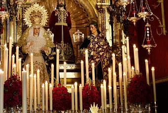 Sobre el retablo está la figura de Jesús ante Anás (nacido de las gubias de Castillo Lastrucci) acompañado por Nuestra Señora del Dulce Nombre y San Juan Evangelista. A sus pies oramos juntos al Cristo del Mayor Dolor.