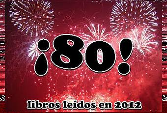 Jamás había leído tanto en un año. Llevo apuntando los títulos de mis lecturas anuales desde 1994 (eso os dará una idea de mi ancianidad recurrente). Y puedo decir que he superado mi record de una forma inverosímil. Eso sí, chapeau a quienes lleguen y sobrepasen los 100 títulos. Esa frontera no pienso ni planteármela XD. Y sé que jamás estaré tan cerca de esta cifra -80 libros- en un mismo año, así que mientras leía el número 79 me prometí que remetería uno más aunque me fuera la vista en ello.Lecturas 2012El veneno de Dios. Pandemonium. Die for me. La conspiración de Melengar. Otoño rojo púrpura. Demonio de libro. Guarida de ladrones. La concubina de Roma. Fue un beso tonto. Príncipe del mal. Promise. El viaje. Los cien mil reinos. La espía de los Tudor. Quantic Love. El heredero, los planes del duque. La estrella. La pastelería Bliss. Los juegos del hambre. Born Wicked. Décima Docta. Bajo las estrellas. La bruja del rey. El juramento. La bruja de Babilonia. Anna vestida de sangre. El guardián de los secretos. La prometida perfecta. Cuarentañeras. Ríos de Londres. Buenos días, princesa. Desear al diablo. Incarnate. POD. Forgotten. La última princesa. Nunca volveremos a ser las mismas. Buscaré el océano. Pasión bereber. LA adivina. El bebedor de lágrimas. Carpe diem. Predestinados. Saint-Germain, Hotel Transylvania. El honor de un caballero. La mecánica del corazón. Caricias de fuego. Abandonada. El pianista. Malditos. Soulless. Abraham Lincoln: cazador de vampiros. Angelology. Resurrección. Until I Die. El final de todos los inviernos. Tentación de ángeles. Play. Ciudad de cristal. El tiempo que nos une. La librera y el hereje. El lazo rojo. La casa del viento. La hija de Ra. La verdadera historia del Capitán Garfio. Falsos recuerdos. Una sonrisa roja como la sangre. El don del lobo. Efímera. Ex libris. Changeless. Sirenas. Hipernova. La llave del destino. Relatos de Conan. El teatro de los prodigios. 666 Park Avenue. Nada es para siempre. El secreto del amor. The Nosferatu Scroll.Ahora, repasemos los retos propuestos con toda inocencia a principios del moribundo año: