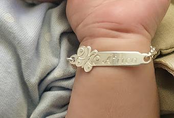 Yo elegí la Esclava mariposa para bebé, que se puede utilizar desde los 6 meses hasta los 6-7 años y pedí que grabaran su nombre por delante y su fecha de nacimiento por detrás. Realicé el pedido un martes y lo recibí el jueves de la misma semana.