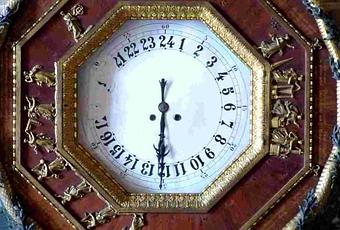 En la Sala Alejandro del Palacio Real de Caserta encontramos un reloj mecánico con doble interés: reloj de 24 horas y decoración alegórica que hace un repaso detallado a la historia de la relojería tanto mecánica como solar o hidráulica.