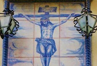 En la Calle Divina Pastora, sobre la fachada de un domicilio particular y a cierta altura del suelo, podemos ver este azulejo pintado a mano por el escultor Darío Fernández Parra en 1955.