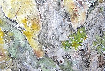 Estaba estos días pintando, entre otras cosas, unos robles de Peñascosa, un pueblo serrano de la provincia de Albacete, a partir de unas fotografías que hice de esa zona el otoño pasado, cuando las hojas, antes de caer, cambian a ese color inconfundible que te permite ver que, entre pinos y carrascas, hay muchos más robles de los que pensabas. Incluso una extraña combinación de pino y roble, creciendo uno dentro del tronco del otro. Por cierto, ya debería estar yendo si quiero llegar a tiempo de cosechar un par de kilos de endrinas para hacer pacharán.El caso es que empecé por un dibujo a plumilla con tinta china aprovechando la variabilidad del grosor de los trazos para sugerir las grietas del tronco. No es necesario dibujar el árbol entero, que cada vez más elijo una parte del tronco, unas ramas, por eso de más es menos. Las posibilidades de equivocarse, en pintura como en todo, son infinitas. Además está ese axioma de que no hay nada tan fácil que no se pueda hacer mal. Uno de los errores en los que caigo a menudo es, deslumbrado por un paisaje, tirarme de una y pintarlo todo. Un paisaje te incita a pintarlo por una luz concreta, la forma de una montaña, un contraste entre lo cercano y la lejanía... Y si eso es lo que quieres recoger en tu pintura, la peor manera de resaltarlo es rodearlo de elementos inútiles, secundarios, que más distraen y quitan que atraen y aportan. Como dibujante, más que pintor, el segundo error, la segunda tentación, es entrar en demasiados detalles. Esta tendencia ya me la conozco, de forma que casi siempre parto teniendo en mente la intención de corregirla. Pintando árboles, sería arduo y estéril intentar pintar rama a rama y hojita por hojita. Pinceles del mayor tamaño posible, manchas, colores y cortar todo lo a tiempo de lo que uno es capaz, que no es mucho.