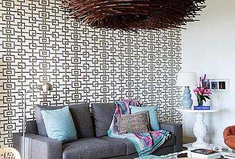 La otra razón es por el papel pintado que cubre una de las paredes de la zona de salón. Se trata de un diseño de Designers Guild, ¡tan retro y elegante a la vez!, al que hace tiempo seguía la pista y cuando lo vi en esta vivienda me terminó de convencer. Ayer mismo lo encargué para una de las paredes del dormitorio. ¡Ya veréis el resultado!