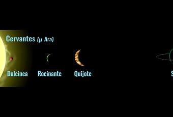 El Planetario de Pamplona, con el apoyo de la Sociedad española de astronomía (SEA) y el Instituto Cervantes, ha impulsado una campaña para dar nombre a la estrella µ (mu) Arae y a sus cuatro planetas con el nombre de Cervantes y los de los principales personajes de su más famosa novela.