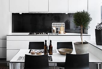 Este elegante y sobrio apartamento esta situado al norte de la ciudad de Estocolmo, y aunque por las imágenes nos podría parecer de grandes dimensiones solo posee unos escasos 50 metros cuadrados. La cuidada distribución contribuye a esta sensación de amplitud, creando un único espacio de salón, cocina, comedor. También la elección de colores, el blanco contrastando con el negro y pequeñas pinceladas de color para dulcificar el ambiente.