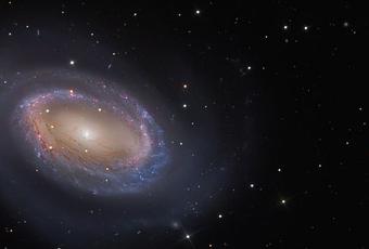 Aunque la mayoría de galaxias espirales como la Vía Láctea tienen dos o más brazos espirales, NGC 4725 sólo tiene uno. En esta nítida composición, la spira mirabilis en solitario parece desplegarse desde un anillo de cúmulos azulados de estrellas recién nacidas y regiones rojizas de formación estelar.