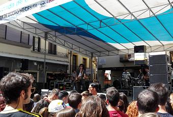 El jueves comenzó como viene siendo habitual en la Plaza del Trigo, epicentro del festival en sus jornadas diurnas y donde más y mejores momentos para la posteridad recogen sus paredes, soportales y, por supuesto, escenario. Inauguró Polock, banda valenciana consagrada en el panorama del pop indie nacional que hizo bailar a los asistentes que comenzaban a poblar la plaza, que todavía no se mostraba en su máximo esplendor debido a las horas y al intenso calor.