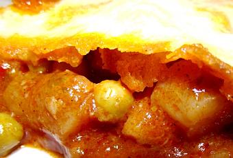 Se ablanda la patica con la cebolla, puerro, cilantrico, sopita, ají gustoso, orégano, pimienta, paprika, sal, etc., cuando este blanda (Tarda una media hora, después que comienza a pitar) se deshuesa y se guisa con abundante pimiento morrón rojo. Se deja que el pimiento se ablande bien, se agrega maicena para espesar (diluida en agua fría) se apaga el fuego y luego se agregan los guisantes verdes. Se saca y se enfria para luego rellenar el pie y hornear.