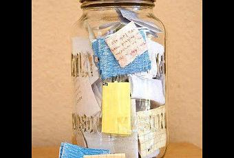 Coge un frasco vacío ¡bien grande!. Según va pasando el año escribe todas las cosas bonitas que te ocurran e introdúcelas en el frasco. El 31 de diciembre de 2013 abre el frasco yrecuerda todas las cosas maravillosas que te sucedieron durante el año. Seguro que has olvidado alguna y leerlas te las vuelve a traer a la memoria.