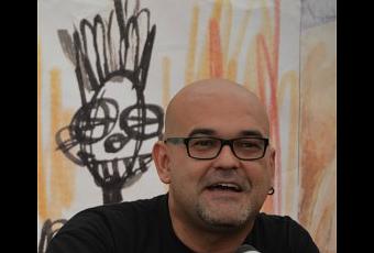 “Hoy tenemos un tren de delitos, pero antes…: una última dosis Semana Negra. Unos minutos para saludar al triunfador, el ganador del premio Hammett de Novela Negra por la obra, que ya recomendamos aquí hace tiempo, “La Estrategia Del Pequinés”…: Alexis Ravelo…