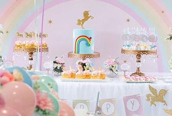 Con las ultimas tendencias de flores y guirnaldas de globos combinado con el estilo de la mesa de dulces Vintage y romántica, donde el tema de los unicornios se destaca en las siluetas y en el biombo con un adorable dibujo con fondo de arco iris @seveneventsdecTal vez te pueda interesar decoraciones de fiestas para mi primer año