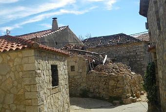 Cuando acabamos el recorrido por el interior de la Colegiata y salimos al exterior, nos entregamos a una peregrinación con final inesperado. Buscamos algún lugar donde comer (éramos 9 "peregrinos") y nos aprestamos a buscar algún restaurante de menú y precios razonables. Fue prácticamente imposible: en la mayor parte de los bares no daban de comer y en los que sí daban nos decían que era muy tarde para atender a un grupo tan numeroso. Sorprendidos desagradablemente porque en una ciudad con un valioso patrimonio histórico y con aspiraciones a atraer turismo de todo género no hubiera forma de comer en condiciones, culminamos la peregrinación en una suerte de hamburguesería-bar-mesón, un híbrido extraño en una ciudad medieval, denominado Valeria donde dimos cuenta de unas hamburguesas con patatas fritas, huevos y bacon.La sobremesa fue un paseo calmo por las viejas calles de la ciudad. Calles apacibles ante las que no dejé de preguntarme por la vida cotidiana en el lugar: la lentitud del paso de las horas, algo que siempre he advertido cuando he pasado varios días en alguna pequeña ciudad de la Castilla profunda. La hospitalidad de sus cafeterías, que tienen algo de refugios cosmopolitas frente al casticismo que reina en las calles. El aire de cuarto de estar de esos bares de café y copa donde los lugareños entretienen las tardes jugando al mus o al dominó.... Y el deterioro de los edificios de viviendas. Esta última circunstancia fue lo que más de emocionó: en Berlanga, como en otras ciudades similares de la ribera del Duero, hay muchas casas como la que se recoge en la fotografía: las ventanas cerradas desde Dios sabe cuándo, las paredes desportilladas, los cristales rotos... Y comercios cerrados con los escaparates vencidos por el polvo de decenios. "No es la crisis", pensé. Y en efecto: muchas casas dejaron de estar habitadas en los años setenta u ochenta del pasado siglo.