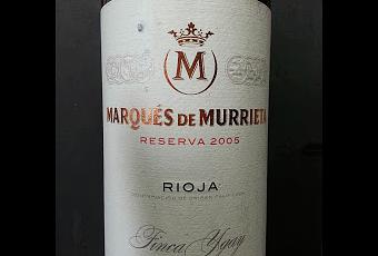 Vendimia manual, despalillado, fermentación por separado en inox con control de temperatura y continuos remontados y bazuqueos durante la maceración. Crianza de 22 meses en barrica de roble americano y 24 meses en botella. Así, Marqués de Murrieta Reserva 2005 (DOCa Rioja, tinto reserva, 84% Tempranillo, 13% Garnacha tinta, 3% Mazuelo; Marqués de Murrieta) es un vino de color granatoso, con ribete granate, de capa media baja. Nariz cálida y elegante, licorosa, con vainillas, especias, mina de lápiz y fruta roja escarchada. En boca, un delicia de sedosidad e integración, con una acidez viva, un tanino muy dulce, retronasal marcada por las frutas rojas, y un final tremendamente delicado. Aún puede haber más desarrollo de terciarios que le den mayor complejidad, y tiene vida por delante para su guarda, pero está soberbio.