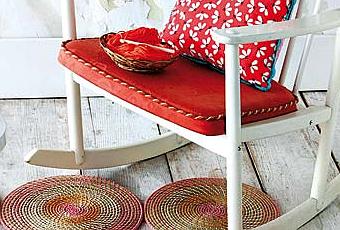 Una alfombra artesanaloriginal realizada a partir de salvamanteles de ratan, si eliges salvamanteles de diferentes formas y colores, le darás un toque patchwork muy actual. Otra opción para tu alfombra artesanal son las galletas para sillas o utilizar posavasos como nexo de unión de las piezas. Además, puedes rematar los bordes de tu creación con una cinta de pasamanería o personalizarla con bordados.