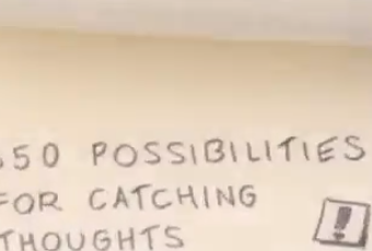 Podemos ver que los "tacos" de post-its entran en movimiento y forman una historia animada donde el personaje principal tiene que pasar por ciertas adversidades antes de cazar su gran idea.
