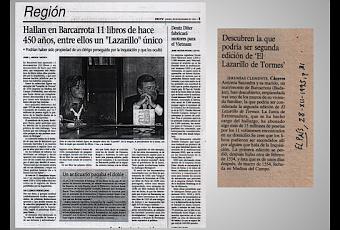 Tomo notas para escribir algo sobre la reciente edición crítica del Lazarillo de Tormes de Luisa López Grigera (Madrid, Arco/Libros-La Muralla, 2024), y me he acordado de cuando se hizo público el hallazgo de la conocida como Biblioteca de Barcarrota, además de la adquisición por la Junta de Extremadura de aquel tesoro de libros y el compromiso del gobierno regional de velar por su conservación y fomentar su difusión e investigación. Se hizo en una rueda de prensa celebrada en la sede de la presidencia de la Junta la mañana del miércoles 27 de diciembre de 1995, en la que participó Toni Saavedra, propietaria de la casa donde se encontró el alijo, junto a Juan Carlos Rodríguez Ibarra y el consejero de Cultura y Patrimonio Francisco Muñoz Ramírez. Al finalizar el acto, que hubo que agendar con ciertas prisas y con las dificultades de las fechas navideñas, alguien reparó en que la noticia se publicaría el 28 de diciembre, día de los Santos Inocentes, por lo que titulares de periódicos nacionales como «Descubren la que podría ser segunda edición de ‘El Lazarillo de Tormes’» (El País, 28-12-1995, pág. 31) o «Encontrado un Lazarillo de Tormes de 1554» (Diario 16, 28-12-1995, pág. 26) podrían ser leídos con la prevención del día. ¿Un ejemplar desconocido del Lazarillo hallado emparedado junto a nueve impresos más y un manuscrito del siglo XVI en una vivienda de Barcarrota (Badajoz)? A alguno pudo parecer aquello una inocentada que, por fortuna, resultó ser una noticia tan verdadera como feliz.