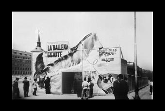 Después de llegar a la capital transportada en un camión especial, el lugar escogido para esta esperpéntica atracción fue la zona de Moncloa, enfrente del Cuartel General del Ejército del Aire. Allí se montó un barracón en el que los asistentes, previo pago de una entrada de dos pesetas, podía ver el cuerpo sin vida de Moby Dick (que así se le bautizó a la pobre). Elevado sobre unos trípodes los asistentes podían ver e incluso posar con un animal que nunca antes habían tenido delante. Sin embargo, al poco tiempo lo que se prometía como un ventajoso negocio se convirtió en un nauseabunda pesadilla.