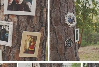 Uno de los detalles que más me ha gustado es la galería de fotos colgadas de los árboles, representando los años que llevan juntos.