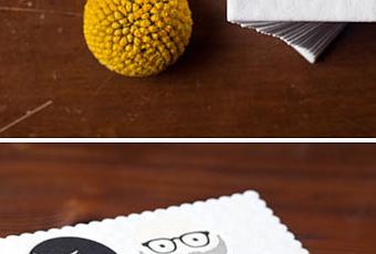 Toda la papelería de la boda fue diseñada por Dan, propietario del estudio de diseño Vahalla Studios. Me encantan todos los detalles gráficos que crearon: desde un CD con las músicas de la boda, hasta un poster que ilustraba su pequeña familia, incluyendo sus mascotas. Incluso hicieron ellos mismos el cake topper! Y el vestido del muñequito de la novia también llevaba tela del vestido de su abuela!