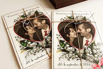 Inma y Gonzalo me propusieron un diseño para sus invitaciones de boda, lo tenían muy claro, querían "hacer algo vintage", me enviaron dos imágenes de postales antiguas y una foto de los dos para incluir en el diseño.