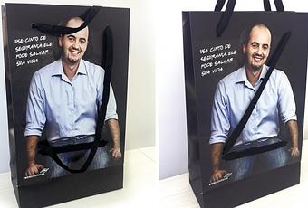 Se trata de una bolsa, cuyas asas se convierten en cinturones que se ajustan al conductor ilustrado en el soporte. Una gran idea para concienciar a la población, que será repartida por varias tiendas comerciales y eventos de promoción.