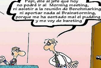 Me ha llegado por e-mail esta parodia de la obsesión por los anglicismos (que para más delito, la mayoría de nosotros pronunciamos fatal!!!)