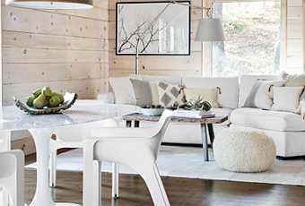 Esta hermosa cabaña en tonos naturales, esta situada en Massachussetts. Esta decorada en preciosos colores beiges y blancos, y han sustituido el revestimiento de madera oscura por esta preciosa madera clara. El resultado como podéis apreciar es moderno , luminosos y sereno, ideal para vivir y descansar.