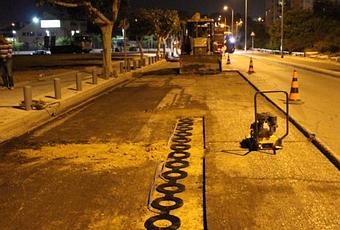 Las bandas de inducción electromagnética de cobre y caucho de la compañía se instalan en el asfalto en una zanja de ocho centímetros de profundidad. La instalación en un trecho de un kilómetro, desde el momento en que se excava hasta cuando se repavimenta, puede hacerse en medio día.