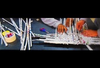 Iniciaron el tejido con las tiras de periódico, en grupos de dos alumnos/as, a continuación imágenes del trabajo: