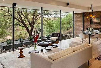 Estas viviendas en climas desérticos se funden mucho con el entorno, los materiales de construcción y revestimientos son robustos y el diseño exterior de la vivienda, junto con el diseño jardines y terrazas se mantienen a tono con las características geológicas y florales de la zona, podéis verlo claramente en las fotografías.