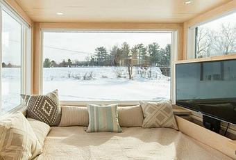 Ese es el objetivo de la publicación de hoy..... soñar en donde nos gustaría pasar unos días y disfrutar un poco del tiempo libre. Esta casa con ruedas, móvil home o módulo es el espacio ideal para vivir y sentirse en plena naturaleza rodeado del paisaje, en este caso nevado, de los amaneceres, atardeceres, estrellas......nada nos impide ver que pasa a nuestro alrededor con sus inmensos ventanales que nos ofrecen una vista panorámica, es como una gran caja de cristal.