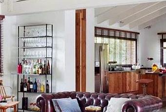 Capitulo aparte merecen los textiles, gruesas cortinas en color berenjena que cubren los enormes ventanales juegan en la misma estancia con cuero en el mismo tono, blancos algodones y cuadros escoceses.