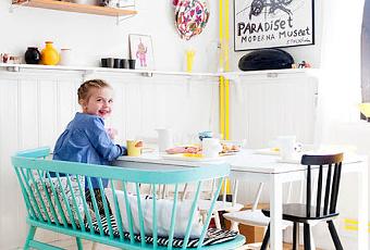 No puedo ver esta casa y no pensar que transmite optimismo por los cuatro costados y creatividad a raudales, me encanta! está claro que todos sus habitantes han dado rienda suelta a su imaginación.... la casa pertenece Klara del blog Pippivogel . Que me decís del radiador amarillo??